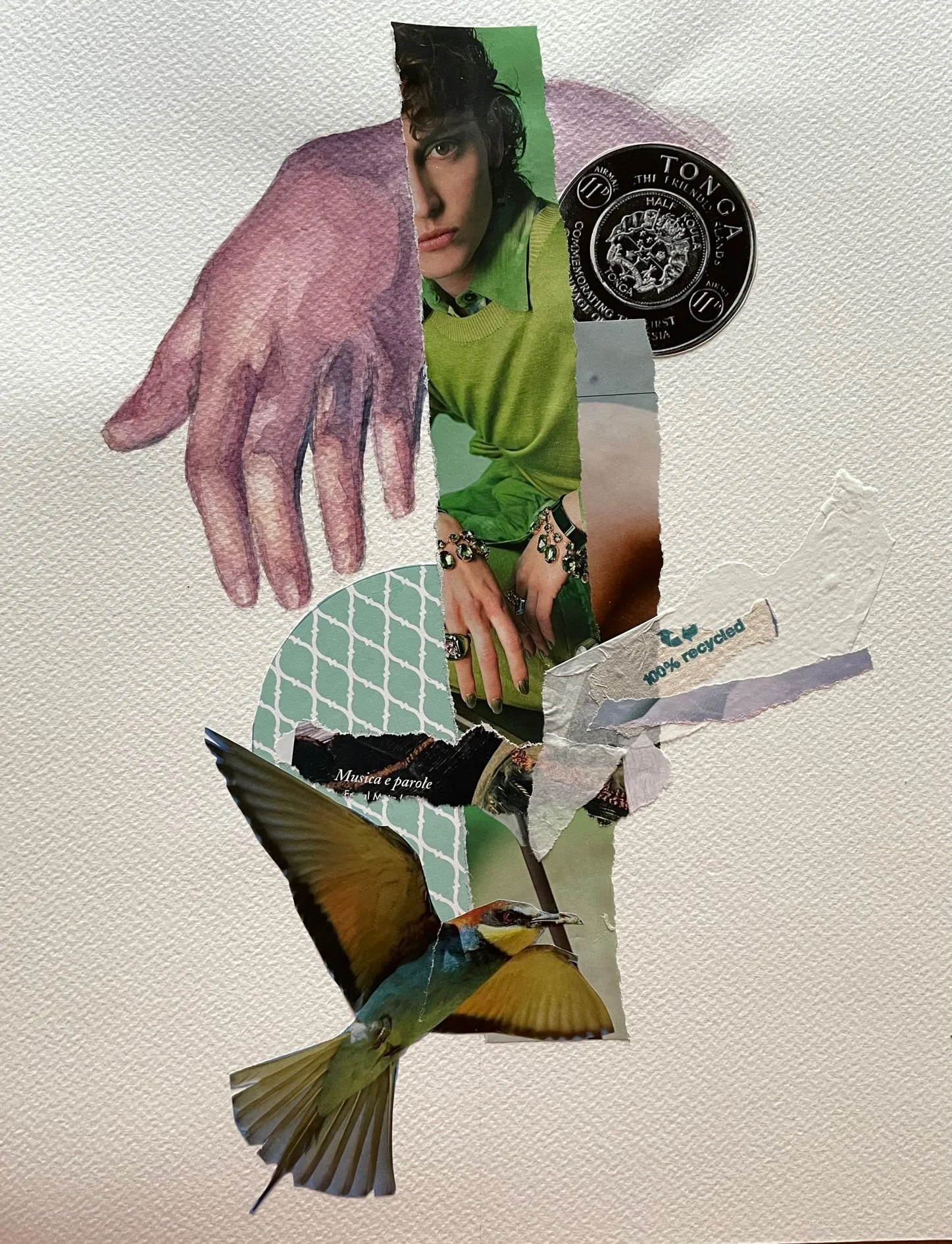 I started riping paper from old fashion magazines, old books, used tickets and such. And began my simple story telling.